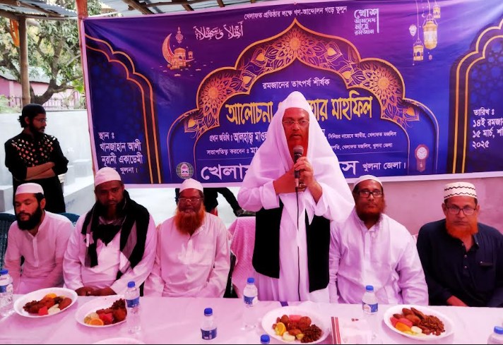 ইফতার মাহফিলে প্রধান অতিথির বক্তৃতা করেন খেলাফত মজলিসের সিনিয়র নায়েবে আমীর আলহাজ্ব মাওলানা সাখাওয়াত হোসাইন। অনুষ্ঠানে সভাপতিত্ব করেন খুলনা জেলা খেলাফত মজলিসের সভাপতি মাওলানা এমদাদুল হক।
