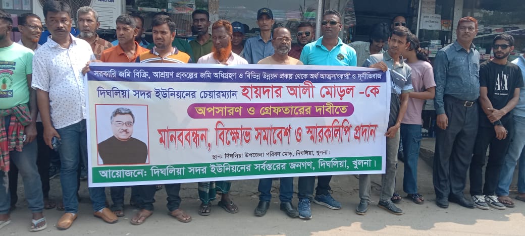 নিজস্ব প্রতিবেদকঃ বিভিন্ন উন্নয়ন প্রকল্প থেকে অর্থ আত্মসাত, সরকারি জমি বিক্রি, আশ্রয়ণ প্রকল্পের জমি অধিগ্রহণে ব্যাপক দুর্নীতি ও আলোচিত খুলনার শেখ পরিবারের আস্থাভাজন দিঘলিয়া সদর ইউনিয়নের চেয়ারম্যান হায়দার মোড়লকে অপসারণ ও গ্রেপ্তারের দাবিতে স্মারকলিপি দিয়েছে ইউনিয়নের সাধারণ জনগণ।