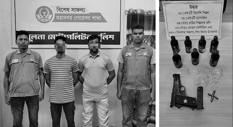 গ্রেফতারের সময় তাদের হেফাজত থেকে ১টি বিদেশি পিস্তল, ১টি ম্যাগাজিন, ৪ রাউন্ড গুলি, ৭ বোতল ফেন্সিডিল এবং ৩৫০ পিস ইয়াবা ট্যাবলেট উদ্ধার করা হয়।