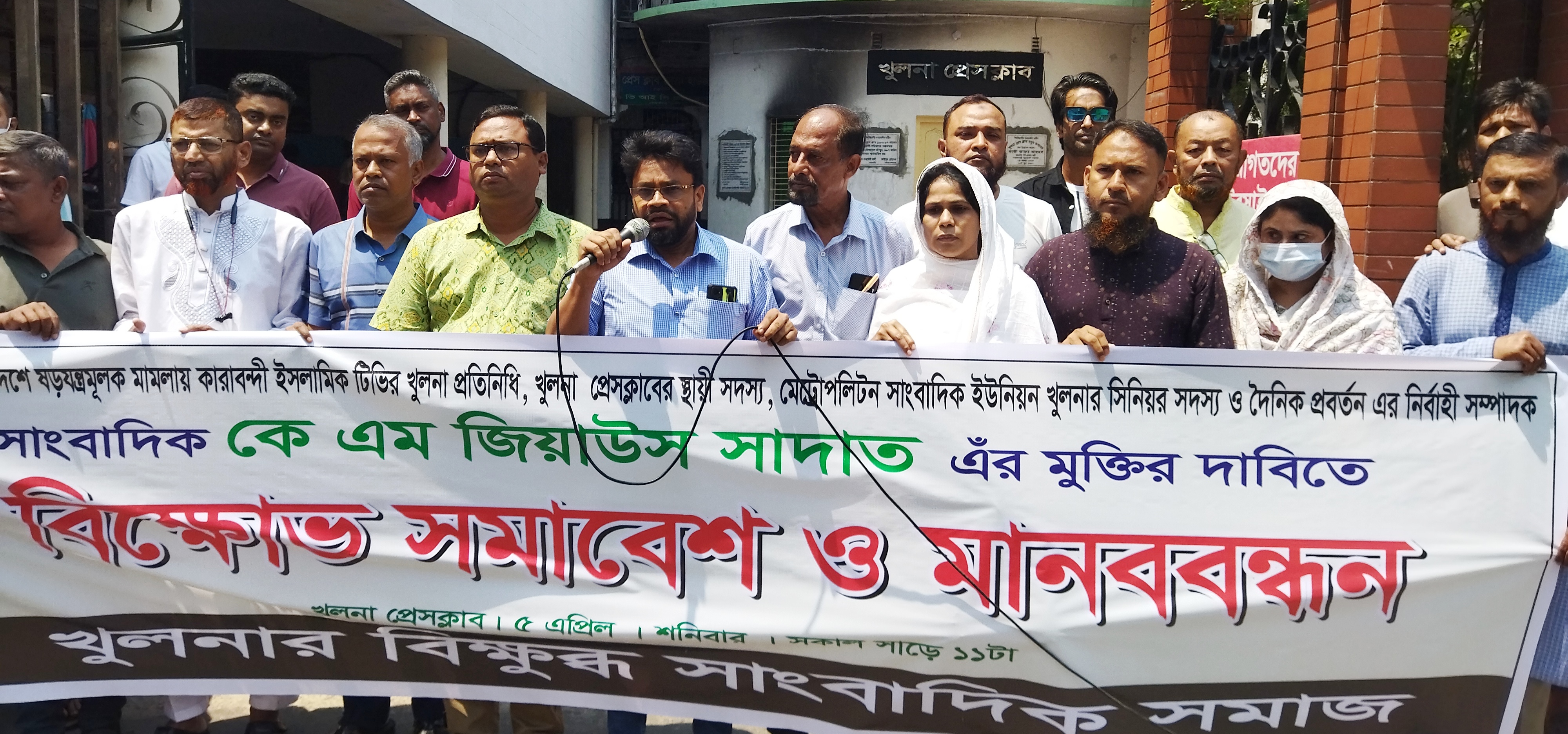 শনিবার (৫ এপ্রিল) বেলা সাড়ে ১১টায় খুলনা প্রেসক্লাবের সামনে বিক্ষুব্ধ সাংবাদিক সমাজের ব্যানারে অনুষ্ঠিত মানববন্ধন ও বিক্ষোভ সমাবেশ থেকে তারা এ দাবি জানান।