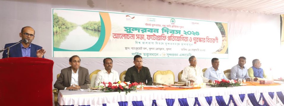 সুন্দরবন একাডেমির ব্যবস্থাপনায় এবারের সুন্দরবন দিবসের কেন্দ্রীয় অনুষ্ঠান অনুষ্ঠিত হয় খুলনা প্রেসক্লাবের ব্যাংকোয়েট হলে। সকালে এ অনুষ্ঠানে সভাপতিত্ব করেন সুন্দরবন একাডেমীর নির্বাহী পরিচালক অধ্যাপক আনোয়ারুল কাদির। এতে প্রধান অতিথি ছিলেন খুলনা অঞ্চলের বন সংরক্ষক মিহির কুমার দো। সম্মানীয় অতিথি হিসেবে খুলনা বিশ্ববিদ্যালয়ের ফরেস্ট্রি এন্ড উড টেকনোলজি ডিসিপ্লিনের অধ্যাপক ড. ওয়াসিউল ইসলাম প্লাস্টিক ব্যবহার এবং সুন্দরবন অঞ্চলে তার প্রভাব নিয়ে একটি মাল্টিমিডিয়া উপস্থাপনা করেন। সম্মানীয় অতিথি হিসেবে আরও বক্তৃতা করেন খুলনা প্রকৌশল ও প্রযুক্তি বিশ^বিদ্যালয়ের অধ্যাপক ড. মোঃ মনজুর মোর্শেদ, রূপান্তর-এর নির্বাহী পরিচালক ও সুন্দরবন একাডেমীর উপদেষ্টা স্বপন কুমার গুহ খুলনা প্রেস ক্লাবের আহŸায়ক এনামুল হক। অনুষ্ঠানে উপস্থিত ছিলেন সুন্দরবন পশ্চিম বনবিভাগের বিভাগীয় বন কর্মকর্তা এ জেড এম হাছানুর রহমান। তছলিম আহমেদ টংকারের সঞ্চালনায় অনুষ্ঠানে স্বাগত বক্তৃতা করেন সুন্দরবন একাডেমীর পরিচালক ফারুক আহমেদ। খুলনার কর্মসূচীর মধ্যে ছিল আলোচনা সভা, ফটোগ্রাফি প্রতিযোগিতা, সাইকেল র্যালি ইত্যাদি। খুলনা ছাড়াও সাতক্ষীরা, বাগেরহাট, পিরোজপুর এবং বরগুনার জেলা ও উপজেলা পর্যায়ে নানান কর্মসুচীর মাধ্যমে দিনটি পালিত হয়।