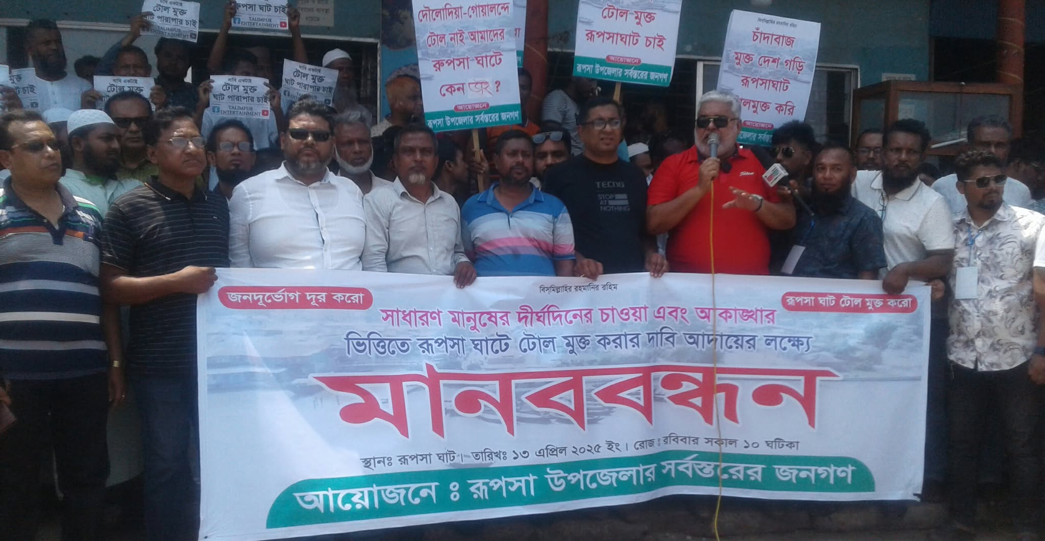 মানববন্ধনে বক্তারা হুঁশিয়া দিয়ে বলেন, অবিলম্বে ব্যস্ততম রূপসা ঘাট টোলমুক্ত করতে হবে। অন্যথায় কঠোর কর্মসূচি ঘোষণা করা হবে। মানববন্ধনে বাংলাদেশ জাতীয়তাবাদী দল বিএনপি, বাংলাদেশ জামাতে ইসলামী, বৈষম্য বিরোধী ছাত্র আন্দোলন, ইসলামী শাসনতন্ত্র আন্দোলন বাংলাদেশ, শ্রমিক কল্যাণ ফেডারেশন, রূপসা উপজেলা মাধ্যমিক শিক্ষক সমিতি, রূপসা কলেজ, নৈহাটী মাধ্যমিক বিদ্যালয়, বাগমারা আল আকসা দাখিল মাদ্রাসা, বাগমারা দক্ষিণপাড়া সরকারি প্রাথমিক বিদ্যালয়, সান প্রিন্টিং প্রেস, বাগমারা বাজার বণিক সমিতি, নৈহাটী কালিবাড়ি বাজার বুনিক সমিতি, পূর্ব রূপসা দাদার বণিক সমিতি, ইলাইপুর বাজার বনিক সমিতি, কাজদিয়া বাজার বণিক সমিতিসহ বিভিন্ন পর্যায়ের গণমাধ্যম কর্মী, বিভিন্ন পেশাজীবী, সামাজিক সংগঠনের নেতৃবৃন্দ, বিভিন্ন শিক্ষাপ্রতিষ্ঠানের শিক্ষার্থীরা, বিভিন্ন স্লোগান সম্বলিত প্লাকার্ড ও ব্যানার হাতে নিয়ে মানববন্ধনে স্বতঃস্ফূর্তভাবে অংশগ্রহণ ও একাত্মতা প্রকাশ করেন। মানববন্ধন শেষে খুলনা জেলা প্রশাসকের মাধ্যমে স্থানীয় সরকার উপদেষ্টা ও বিআইডব্লিউটিএ য়ুগ্ম-পরিচালক দপ্তরে স্নারকলিপি প্রদান করা হয়।
