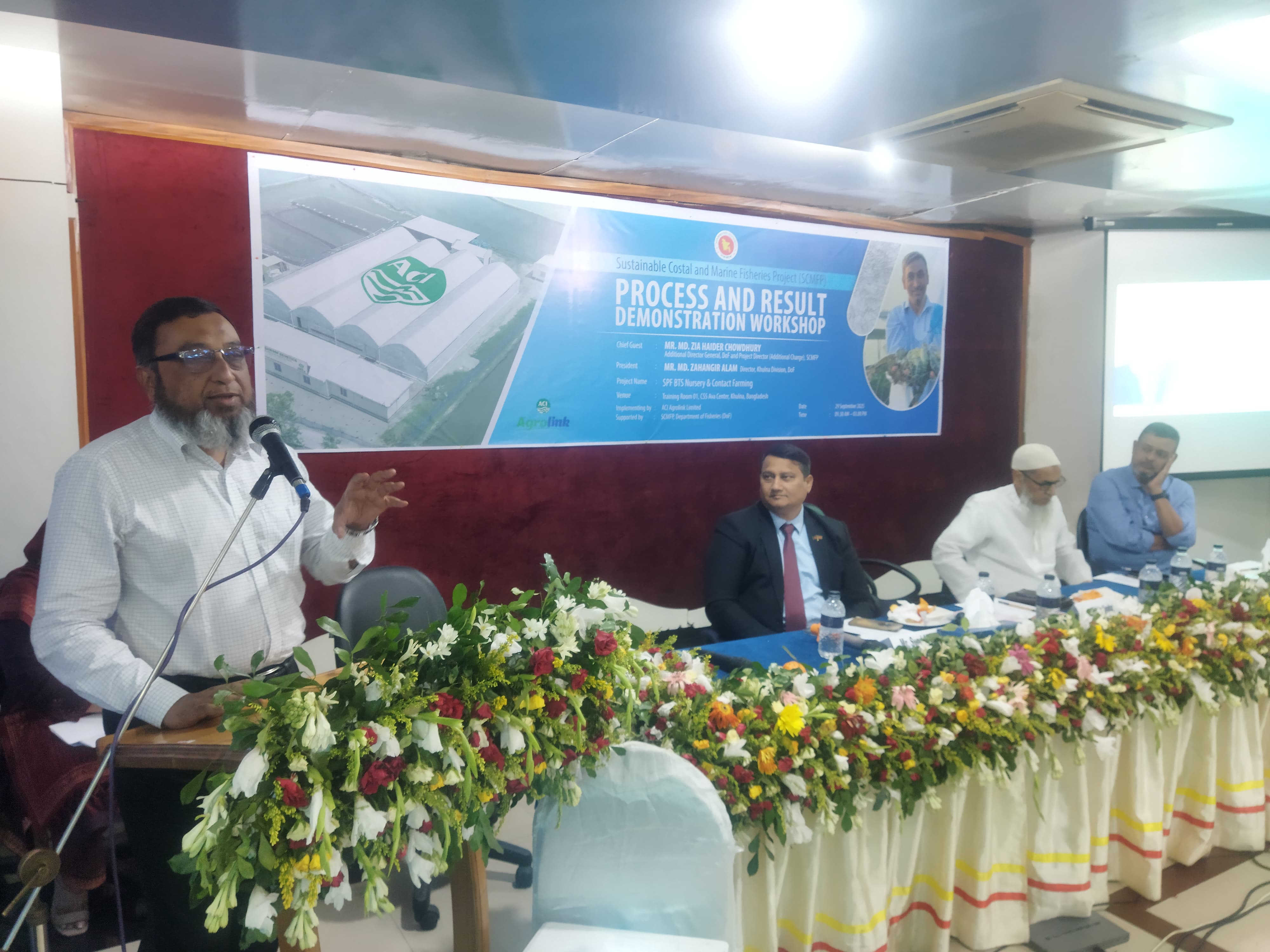 এসিআই এগ্রোলিংক'র বিজনেস ডাইরেক্টর সাঈদ এম ইশতিয়াক। প্রকল্প সম্পর্কে পাওয়ার পয়েন্টে বিস্তারিত উপস্থাপন করেন এসিআই এগ্রিবিজনেস -এর প্রোগ্রাম হেড হাসিবুল মান্নান। ধন্যবাদ জ্ঞাপন করেন এসিআই শ্রিম্প জেনেটিক্স'র হেড অফ বিজনেস মো: শোয়েব চৌধুরী।