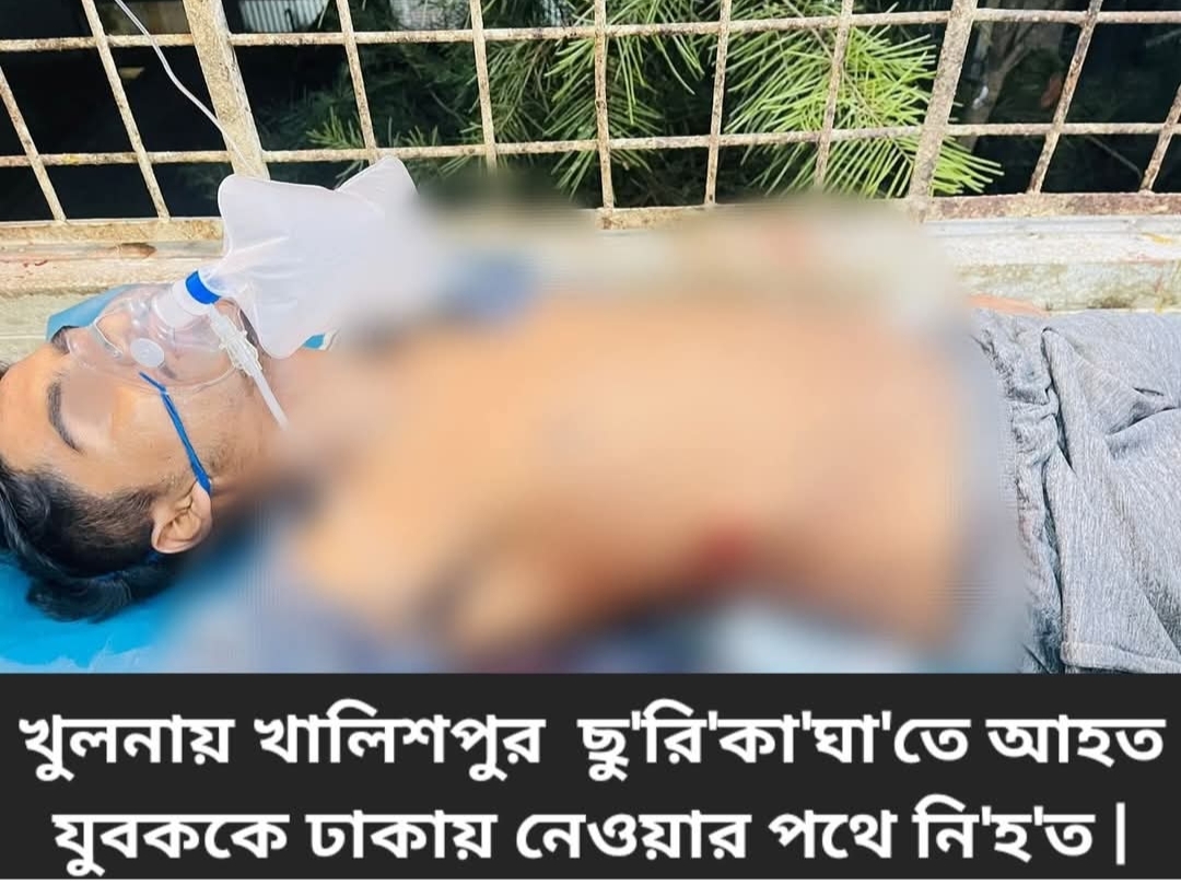 নিজস্ব প্রতিবেদক: (সর্বশেষ আপডেট — ২৭ নভেম্বর ২০২৫)খুলনার খালিশপুরে দুর্বৃত্তদের ধারালো অস্ত্রের আঘাতে গুরুতর আহত এক যুবক চিকিৎসার জন্য ঢাকা নেওয়ার পথে মারা গেছেন।