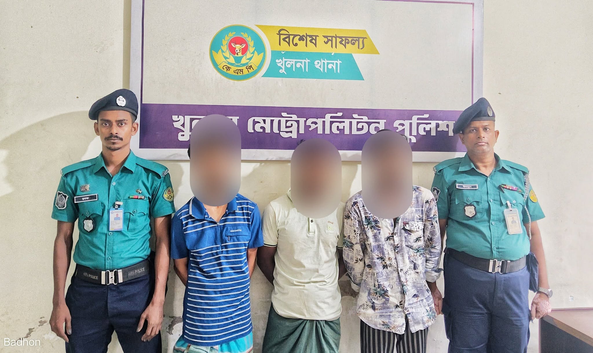 পরে পুলিশ একই দিন রাত ১২টা ৪০ মিনিটে খুলনা সোনাডাঙ্গা থানার পশ্চিম বানিয়াখামার এলাকায় অভিযান চালিয়ে তিনজনকে গ্রেফতার করে।