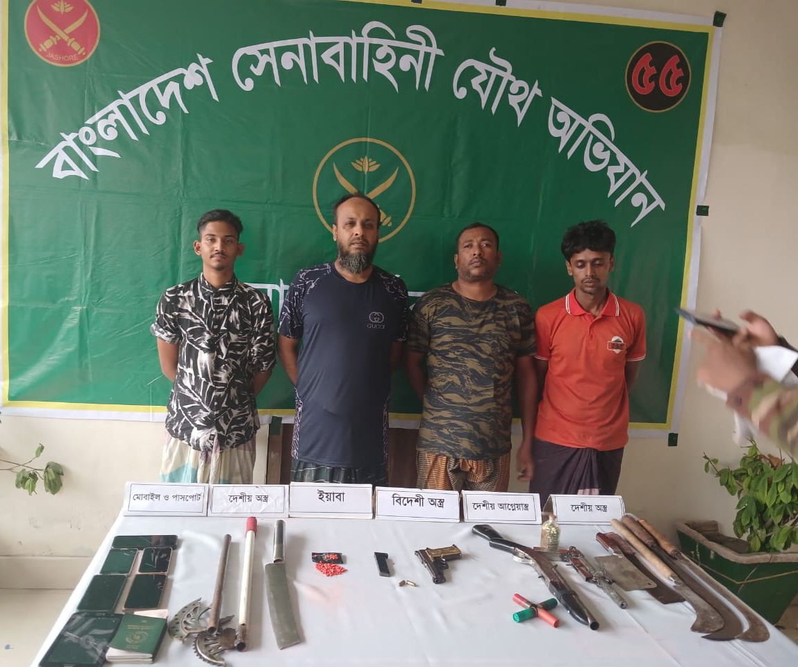 নিজস্ব প্রতিবেদকঃ খুলনার টুটপাড়ায় যৌথবাহিনী অভিযান চালিয়ে বিপুল পরিমান অস্ত্র গোলাবারুদ ও মাদকদ্রব্যসহ কুখ্যাত ৪ সন্ত্রাসীকে গ্রেফতার করেছে।
