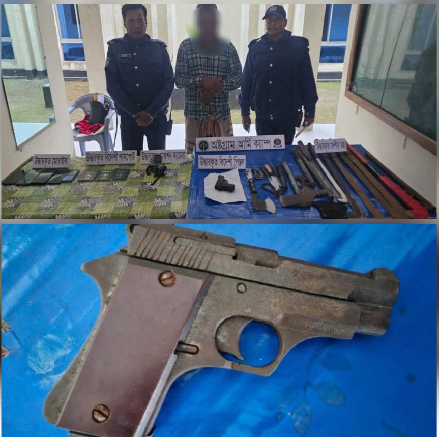 কিশোরগঞ্জ জেলার অষ্টগ্রাম উপজেলায় সেনাবাহিনীর নেতৃত্বে পরিচালিত যৌথ অভিযানে বিদেশি অস্ত্রসহ একজনকে গ্রেফতার করা হয়েছে।