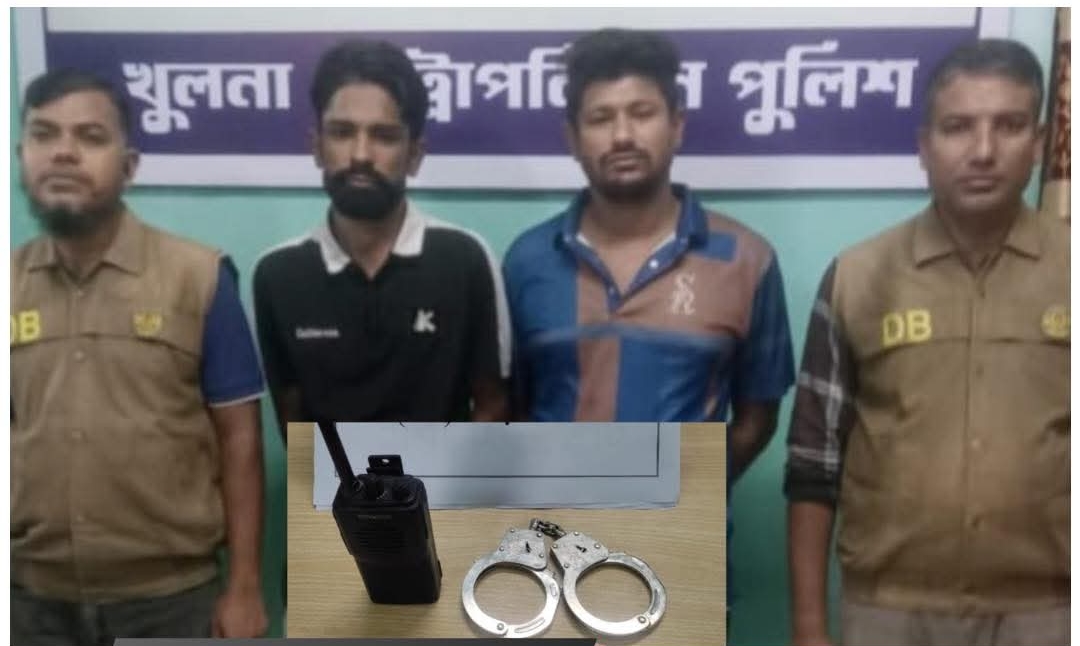 নিজস্ব প্রতিবেদক: খুলনায় ডিবি (গোয়েন্দা পুলিশ) অভিযানে ওয়াকিটকি ও হ্যান্ডকাফসহ দুই প্রতারককে গ্রেফতার করা হয়েছে। তারা দীর্ঘদিন ধরে নিজেকে পুলিশ সদস্য পরিচয় দিয়ে মাদক ব্যবসায়ীসহ বিভিন্ন অপরাধীদের ভয়ভীতি দেখিয়ে অবৈধ সুবিধা আদায় করে আসছিল।