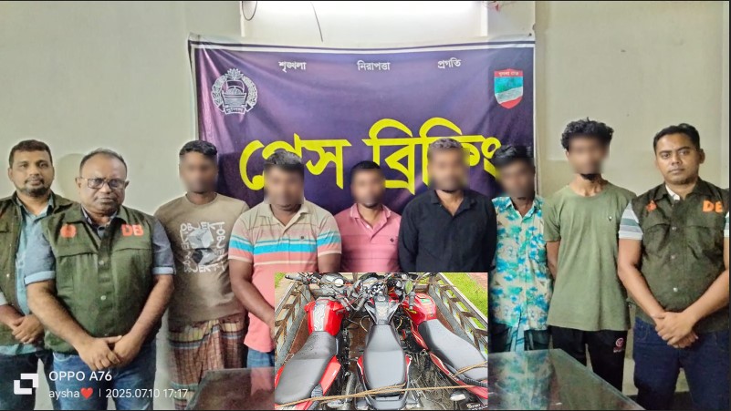 ৯ জুলাইবেলা সাড়ে ১২ টায় জেলা গোয়েন্দা শাখা(ডিবি),যশোরের এসআই(নিঃ)/ মোঃ কামরুজ্জামান, এএসআই(নিঃ)/ রঞ্জন কুমার বসু, এএসআই(নিঃ)/ মোঃ শফিউল ইসলাম সংঙ্গীয় ফোর্সের সমন্বয়ে একটি টিম কোতয়ালী মডেল থানা এলাকায় বিশেষ অভিযান পরিচালনা কালে পালবাড়ি এলাকা হতে মোটরসাইকেল চোর চক্রের সক্রিয সদস্য মোঃ শহিদুল ইসলাম @ শহিদ(৪২) কে গ্রেফতার করে।